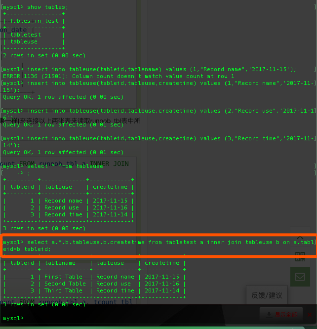 inner join(内连接,或等值连接):获取两个表中字段匹配关系的记录。