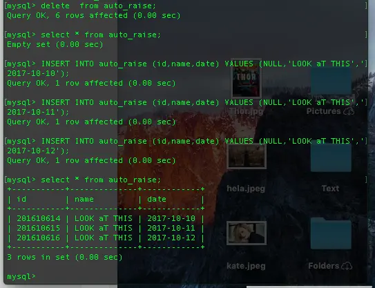 INSERT INTO auto_raise (id,name,date) VALUES ···