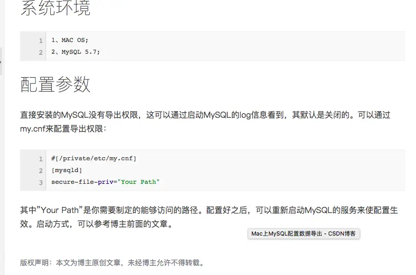 照着上面的办法,直接怼就好了。如果你的/private/etc/下已经有了 my.cnf这个文件,那么直接找到这个参数,改一下就好, 没有的话,自己创建一个咯,内容如下: