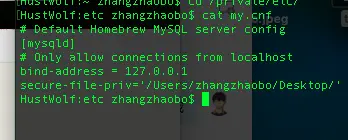 secure-file-priv='/Users/zhangzhaobo/Desktop/'记得把路径改了啊。不然你没我这个用户名,路径报错的。