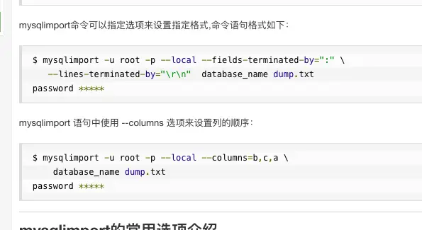 使用 mysqlimport 导入数据: