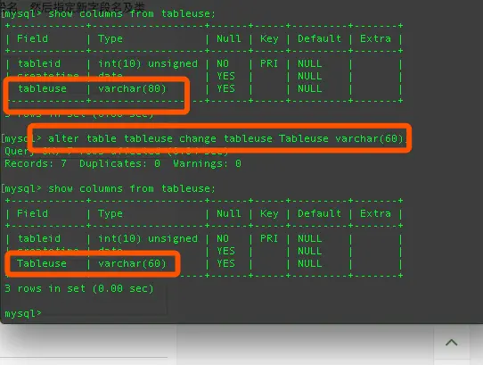 如果需要修改字段类型及名称, 你可以在alter命令中使用 modify 或 change 子句 。