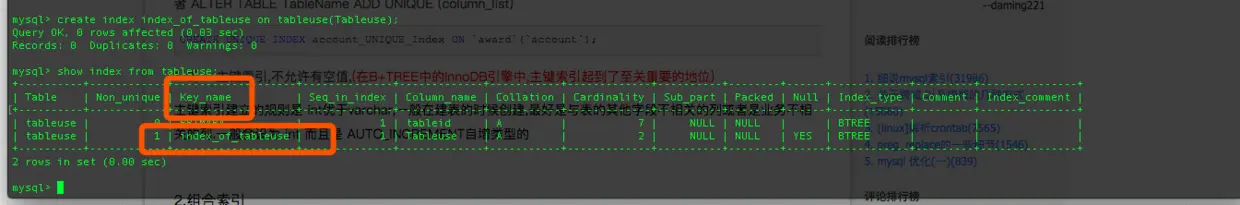 alter table table_name add index index_name ON (column(length))删除表中索引: