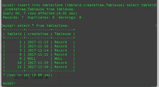 insert into tableclone (tableid,createtime,Tableuse) select tableid,createtime,Tableuse from tableuse;在教程下面看到的,哭死:😭