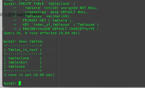 show create table tableuse;第二步:完全复制上面的输出。然后直接修改表名就好了。