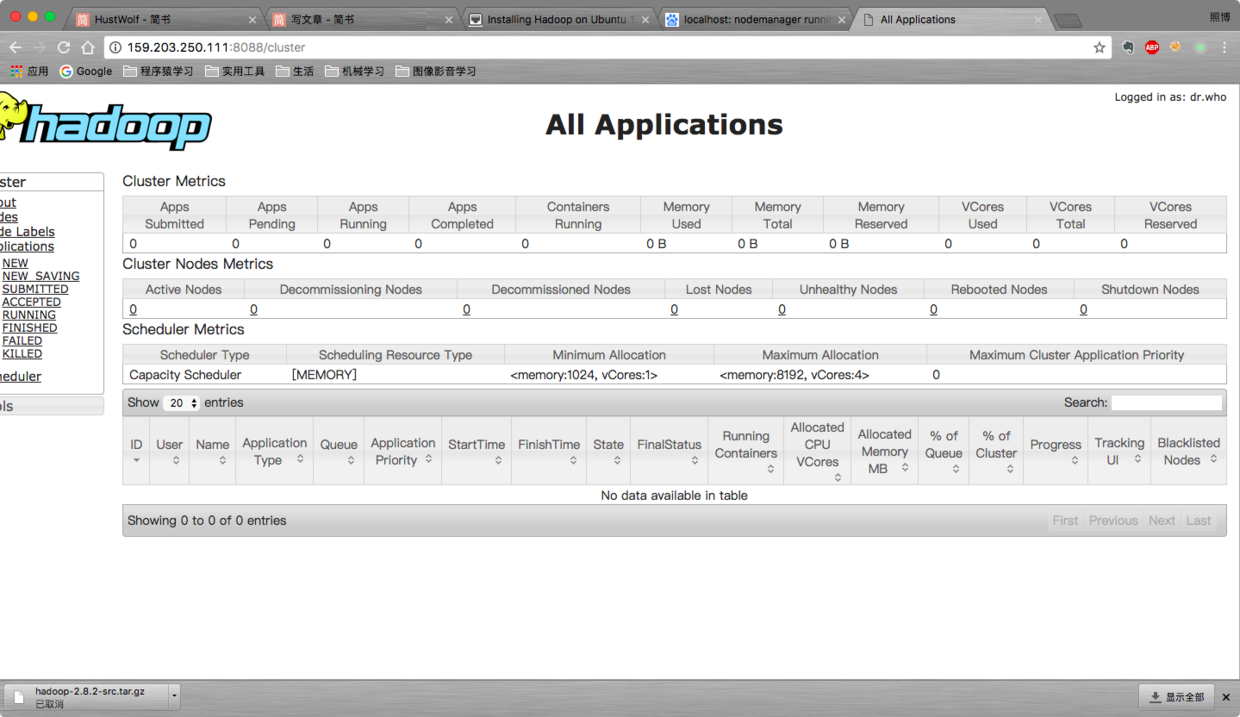 # wget http://apache.cs.utah.edu/hadoop/common/stable/hadoop-2.8.2.tar.gz