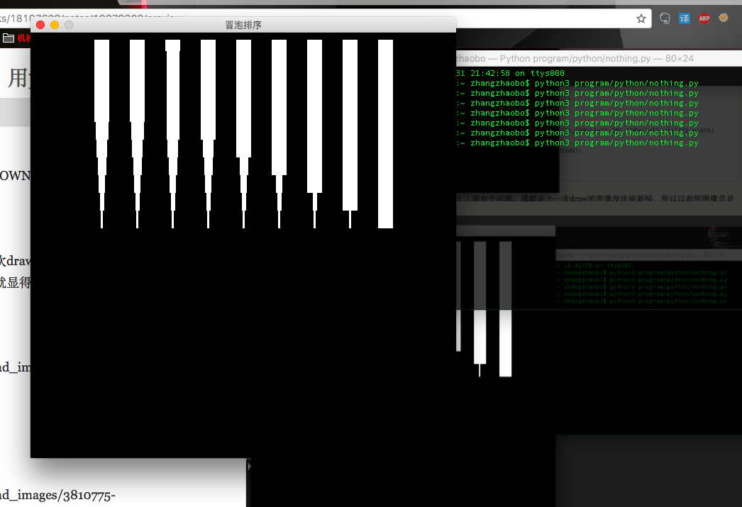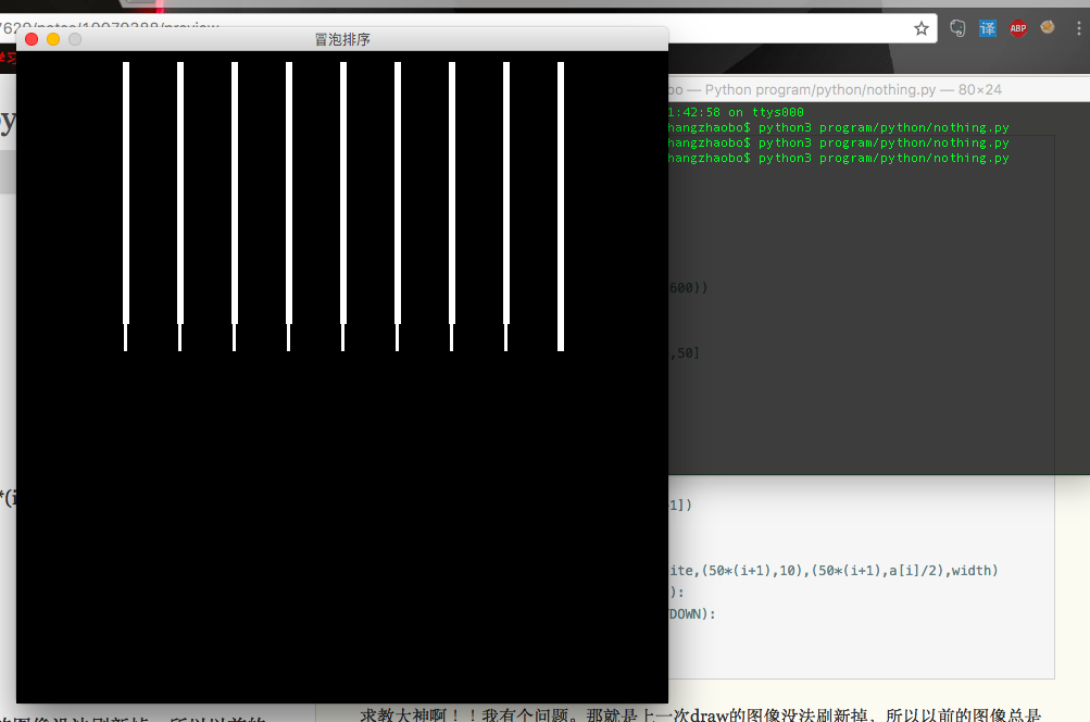 pygame.display.flip()求教大神啊!!我有个问题。那就是上一次draw的图像没法刷新掉,所以以前的图像总是会覆盖掉现在的图像。所以最后就显得很乱!!而且到了最后所有的屏幕充满了我的柱状图!!!