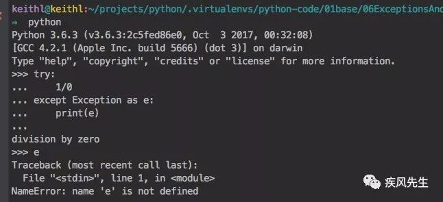py2.x的异常语句Exception对应的实例变量e是全局变量,在try语句块外还可以直接访问