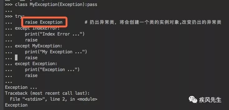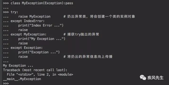 raise class:raise 语句创建一个异常类class的实例并抛出异常信息图14