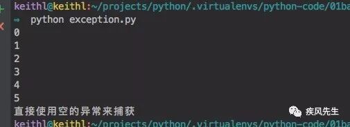 print("直接使用空的异常来捕获")if __name__ == '__main__':