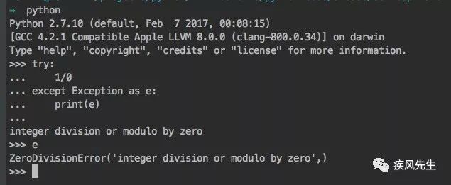 默认异常处理器,即由python自动搜索匹配对应的异常信息