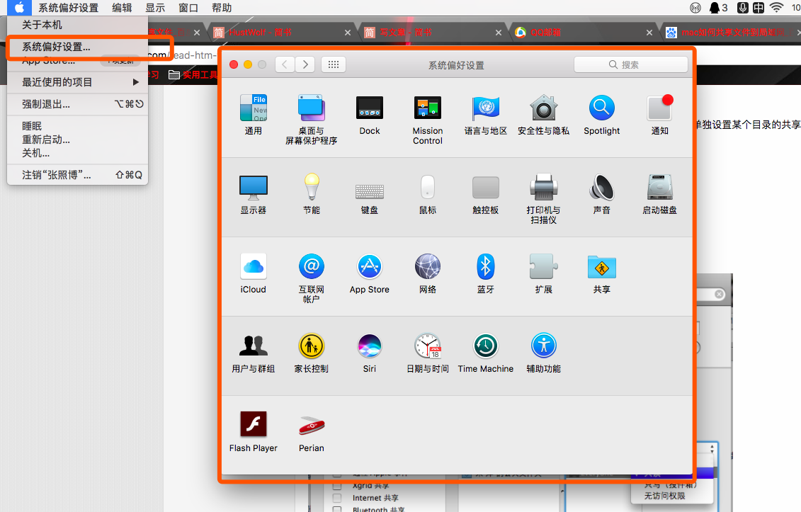 另外,我这个不成熟的Mac下开启文件夹共享的方法是一样的。具体操作见下图,我就不想说,反正我失败了,诸位来看一看是什么原因也是可以的。但是在windows下开启共享文件夹,然后在Mac下登录也是一样的哦。