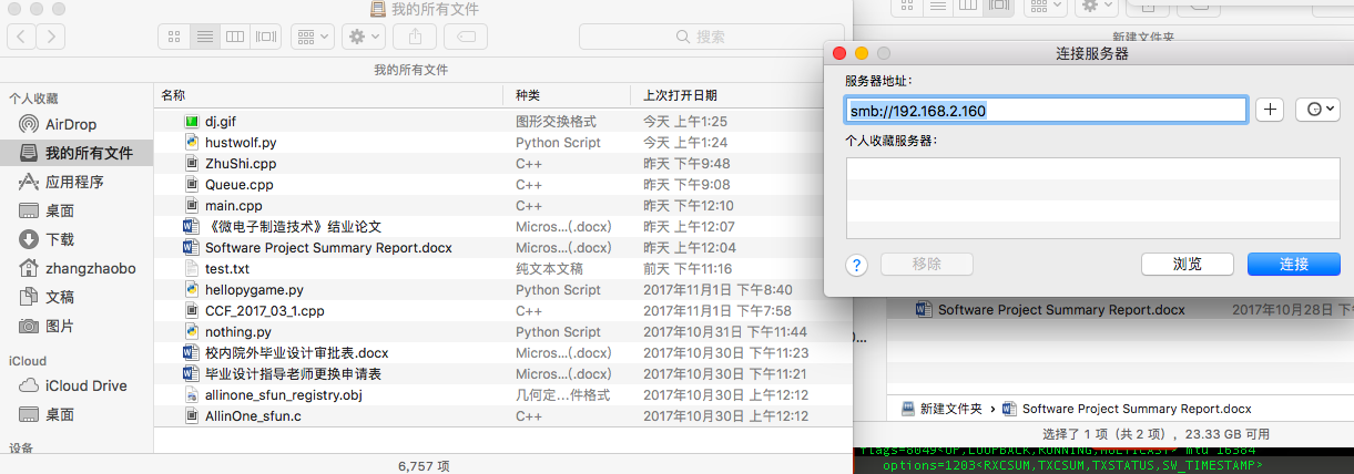 下面这个是在mac上,我先打开的从共享文件夹传过来的gif图,然后打开了传过来的那部电影,大家注意看大小啊,6.8G 我是瞬间传上去了! 然后播放跳转是因为我调了进度条,让大家看到我 的看片的流畅程度!
