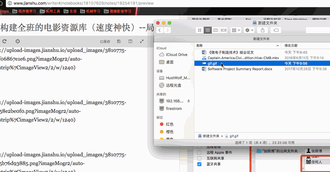上面的这些卡顿都是录屏造成的,我自己看的时候流畅的一笔,跟在自己电脑上一样的。另外,上面这幅图我是在windows下建立的对不对?直接拖到共享文件夹下,直接就拖到简书来了,感情就是本地文件,哎😔 太太太太!! 6了