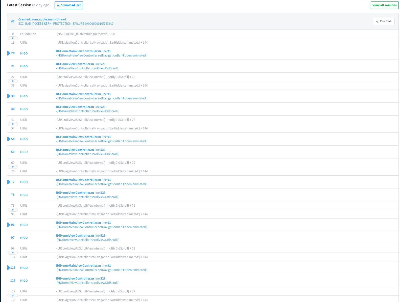 于是,在一个清晨的时候,当我打开fabric的时候,发现我们的主页出现了崩溃,而且居然是递归崩溃,仔细查看之后发现只在iPhone X上出现。