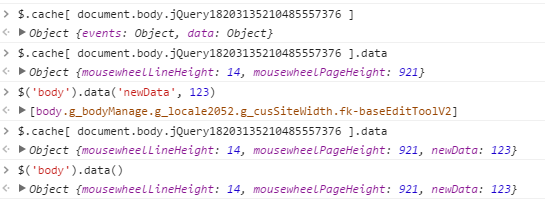 像我们在mousemove,scroll,mousewheel这类高频事件上,就不推荐在里面读写cache上面的数据,可以看下$dom.data和$dom.on这两个接口,内部比较复杂,运算较多。