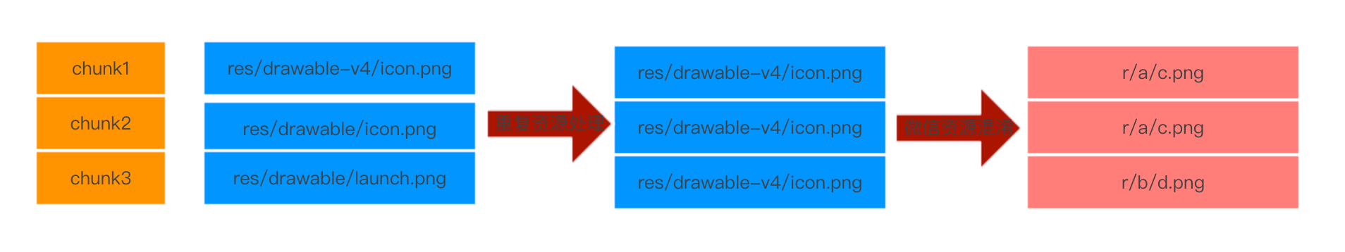 Android开发推崇根据业务拆分多个模块,模块间为了防止资源覆盖,会给每一个模块的资源加一个前缀,同样的资源就会在apk包中出现多次。阅读微信资源混淆源码时发现,它将每个资源Chunk中的资源路径替换为了一个较短的路径。那么对于重复资源,仅仅保留一份,修改arsc文件,重定向Chunk对应的资源路径,就可以解决重复资源问题。