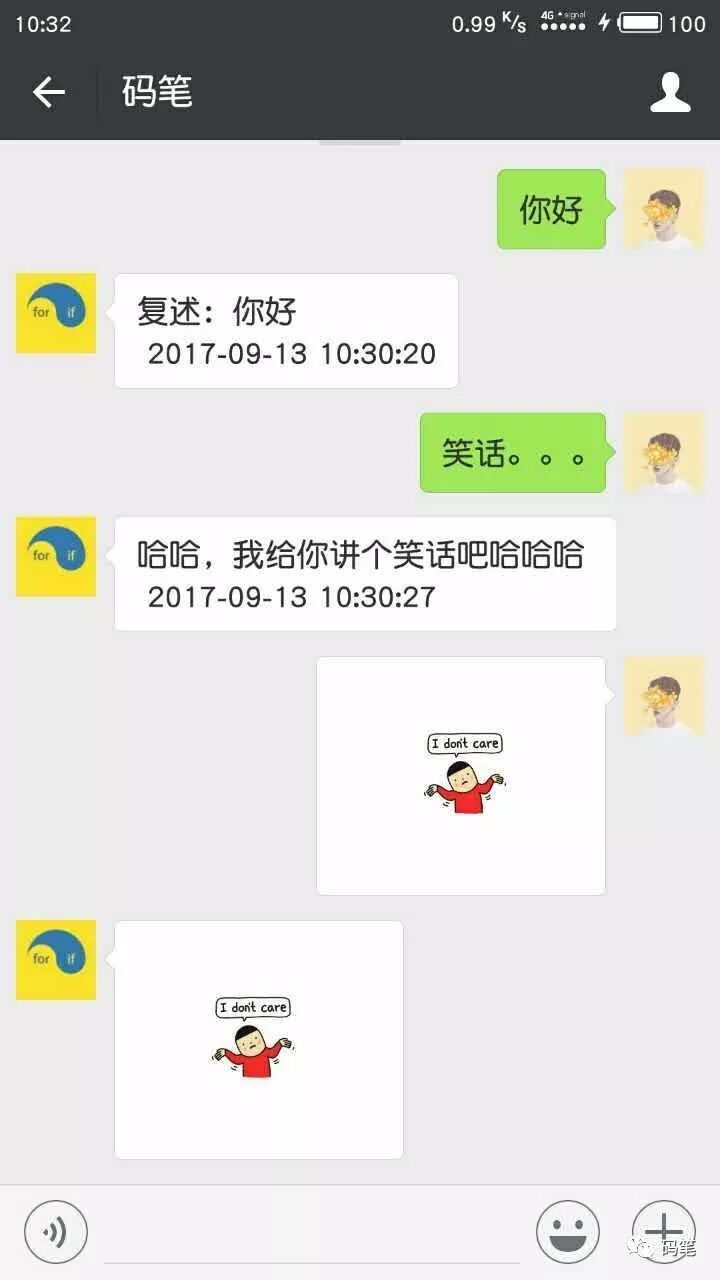 实践出真知,看似简单的几行代码,对于新手来说,是要不断的进行查阅文档和资料,不断的进行试错的,我连git课本都给你准备好了,你还有什么理由不去动手实践一下?仔细的去琢磨一下官方的文档,没有什么比文档更加标准的啦。本文只是实现了一种回复消息和判断消息的大体思路,更多好玩的功能等你去发掘。码字辛苦,如果你觉得好就点个喜欢吧。