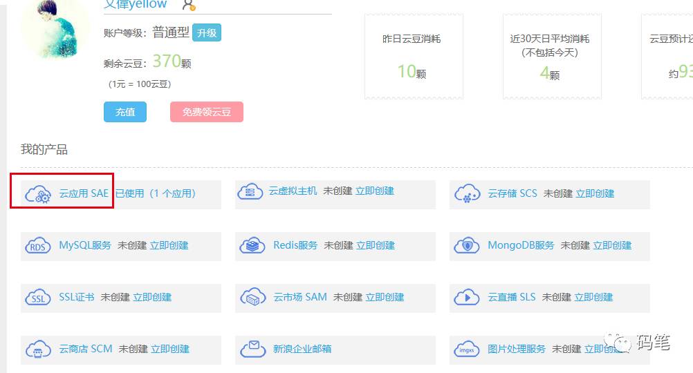 1、首先是去新浪云:http://t.cn/RC4mL5Y 官网注册账号,其实使用微博账号授权登录的,如果你有需要请点击我以上的链接进行注册登录哟,这样你和我两个都会有奖励的,还有一个要啰嗦的就是,新用户会有一定的云豆让你试用,但是如果你身份认证通过后,即使你不使用服务,云豆也会每天自动消耗的,这个要注意,尽早使用或者等要用再认证身份哟。 2、你可以点击云应用,然后进入 控制台,创建新应用