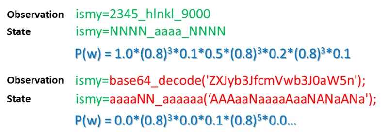 基于HMM的状态序列建模,首先将原始数据转化为状态表示,比如数字用N表示状态,字母用a表示状态,其他字符保持不变。这一步也可以看做是原始数据的归一化(Normalization),其结果使得原始数据的状态空间被有效压缩,正常样本间的差距也进一步减小。