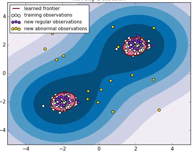 在二分类问题中,由于我们只有大量白样本,可以考虑通过单分类模型,学习单类样本的最小边界,边界之外的则识别为异常。