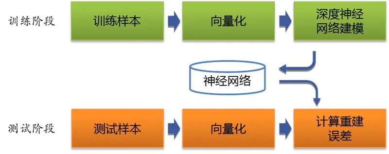我们还是沿用McPAD通过2-Gram实现文本向量化的方法,直接将向量输入到深度自编码模型,进行训练。测试阶段,通过计算重建误差作为异常检测的标准。