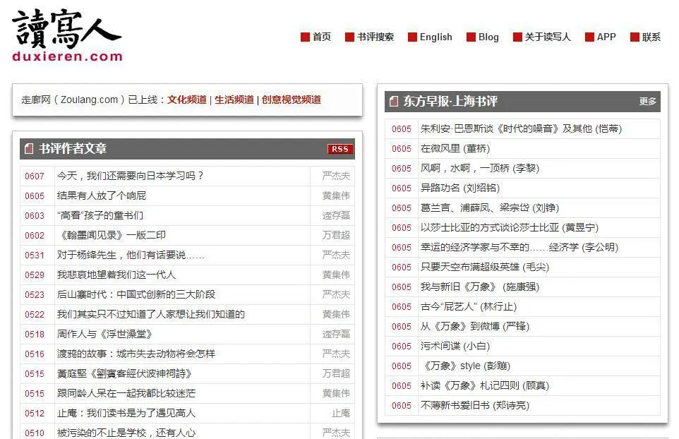 我相信应该有不少人跟我一样,想看完每一本书之后都能够有所获有所得,这是一个融合了书评杂志、书评博客、中英文阅读资源的读书网站,既能提高自己的学习能力,又能增长见识,开拓视野,非常具有实用性的一个网站。《南方都市报·阅读周刊》曾经评论“读写人”可能是全国内容最全的读书网站“希望”读写人“的手机应用成为全国最好的读书类移动应用软件。