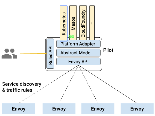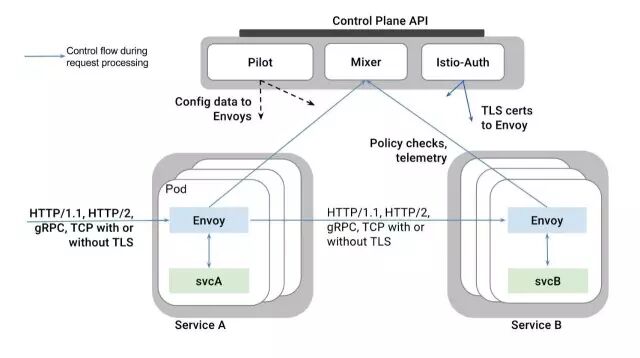 以下分别介绍 Istio 中的主要模块 Envoy/Mixer/Pilot/Auth。