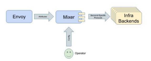 请求处理过程中,属性由Envoy收集并发送给Mixer,Mixer中根据运维人员设置的配置来处理属性。基于这些属性,Mixer会产生对各种基础设施后端的调用。