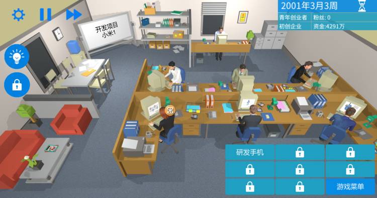 游戏伊始,我的「小米」公司有 6 名员工,颇有一种「开局只有 6 个联合创始人,如何成就全家桶霸业」的王霸之气。(注:小米真的有 6 个联合创始人以及 1 个创始人)