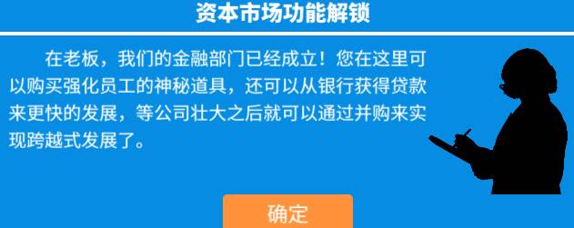 随着手机的发布,公司会成立专门的金融部门,负责融资和购买神秘道具。在看完金融部门职能的第一眼我就想把整个部门都开除了,因为金融部门的功能只是从银行贷款,连股权融资都做不了,要你们有何用!