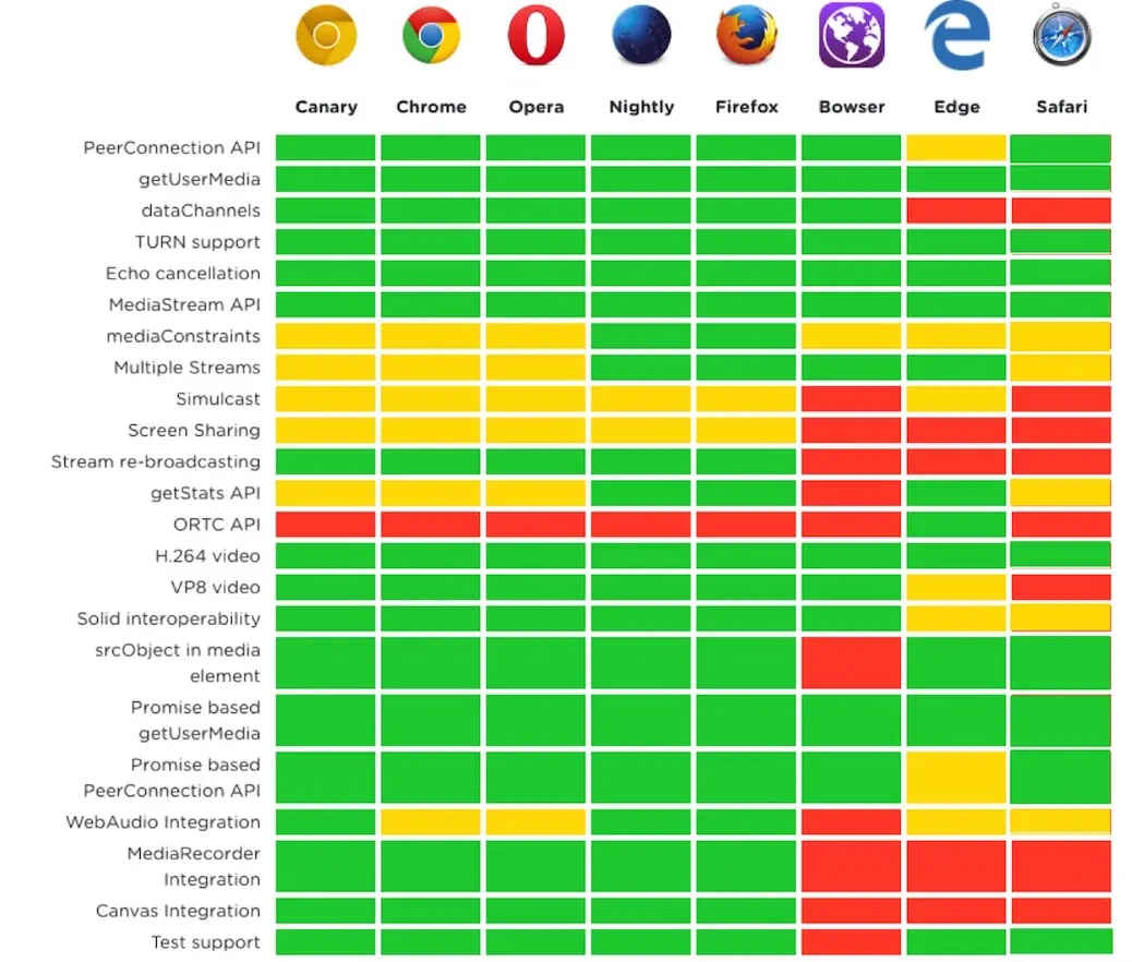 首先,来看一下目前知识WebRTC浏览器和平台的情况。