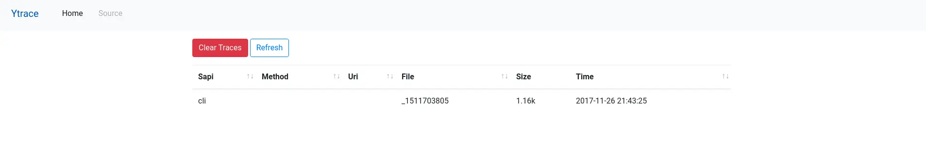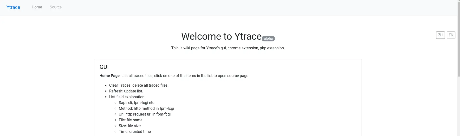 Home Page: List all traced files, click on one of the items in the list to open source page.