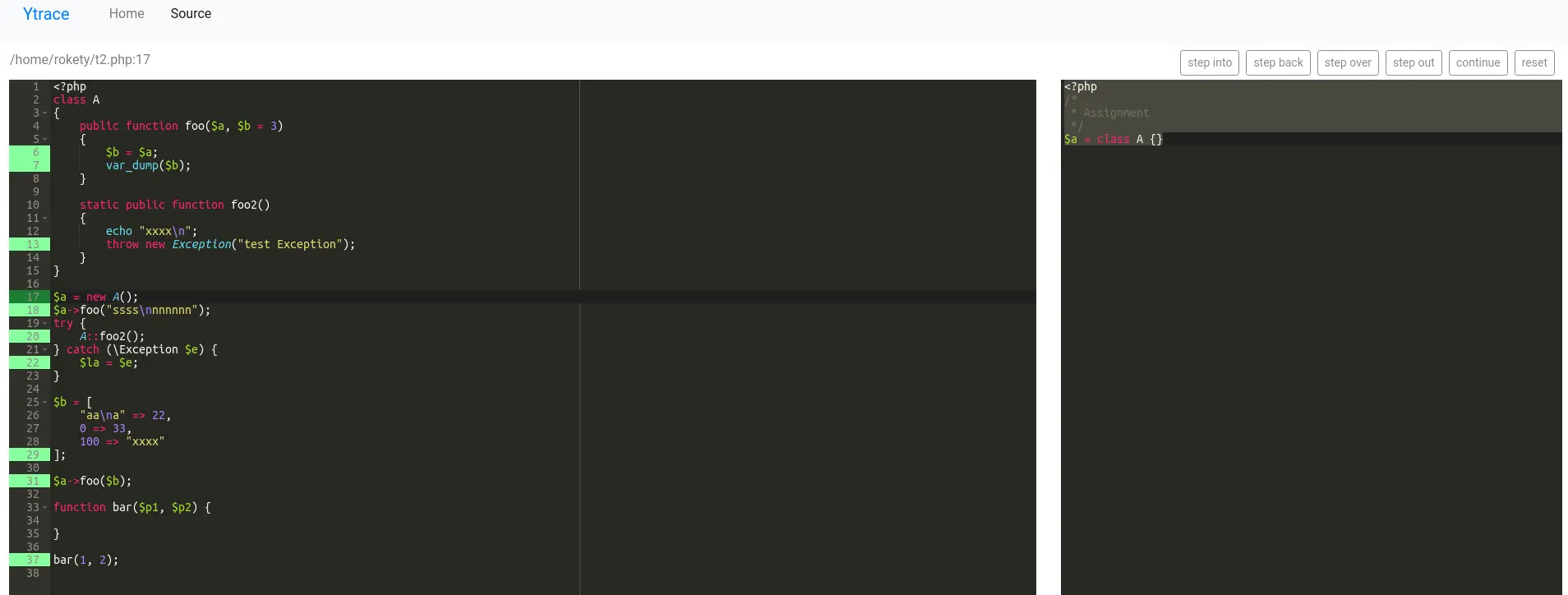 - step through debugging