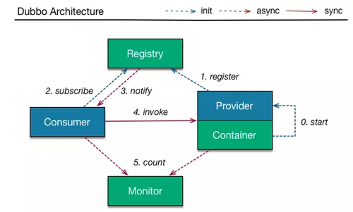 - Monitor:统计服务和调用次数,调用时间监控中心。(Dubbo 的控制台页面中可以显示,目前只有一个简单版本。)