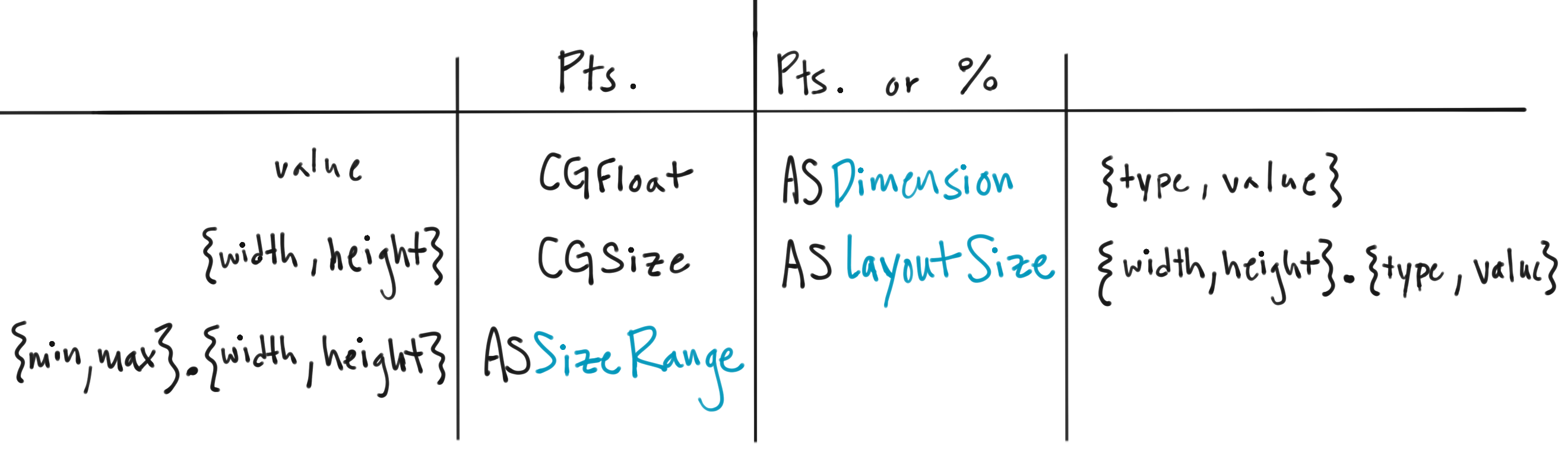 ASDimension 基本上是一个正常的 CGFloat,支持表示一个 pt 值,一个相对百分比值或一个自动值,这个单位允许一个的 API 同时使用固定值和相对值。