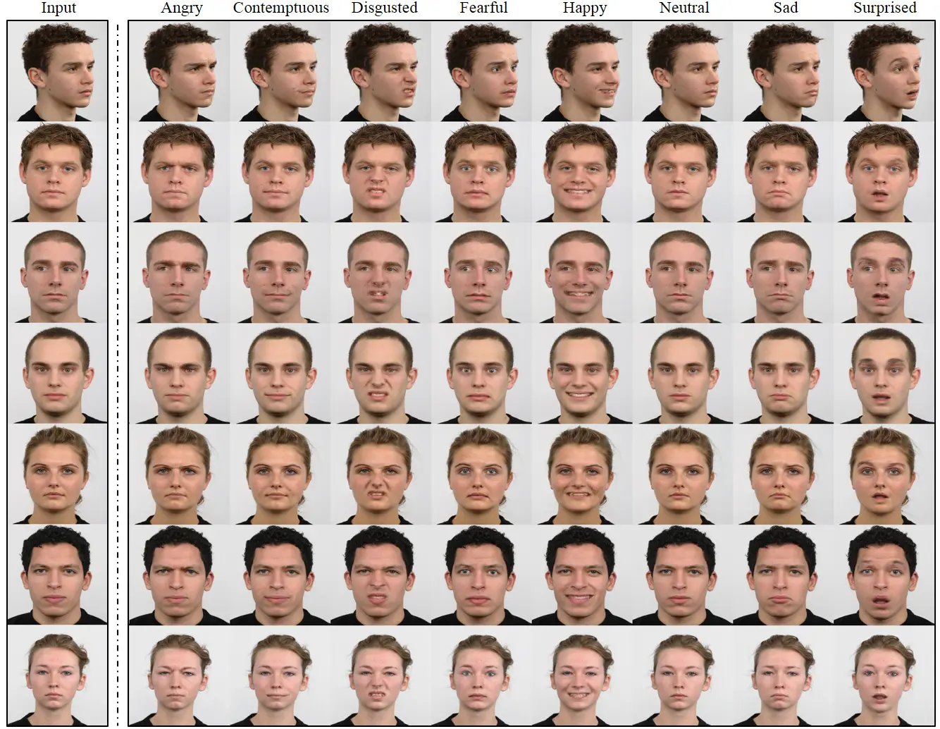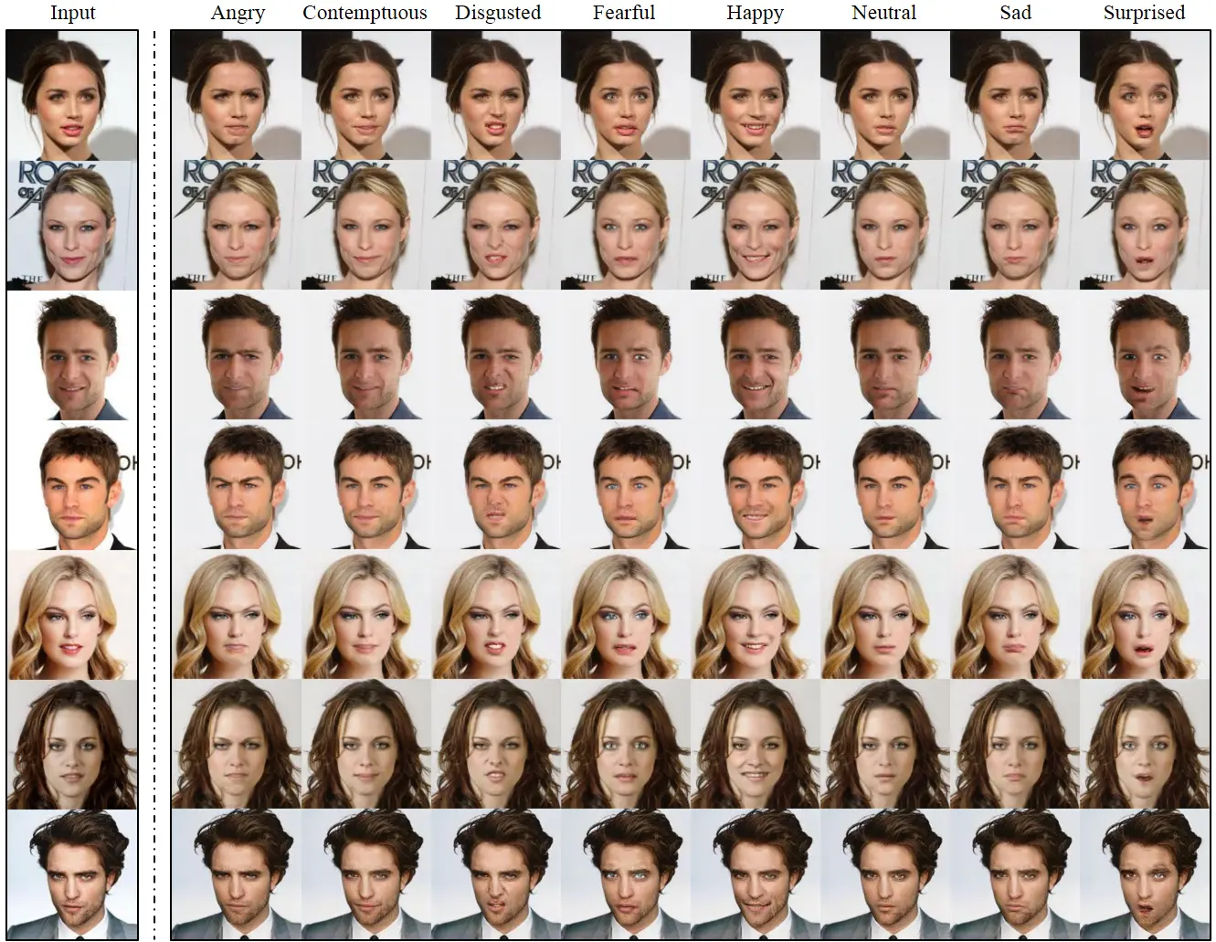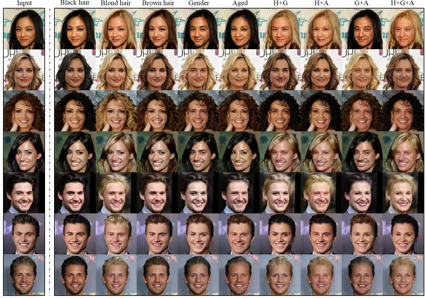 The images are generated by StarGAN trained on both the CelebA and RaFD dataset.