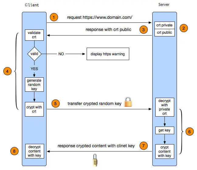 采用HTTPS协议的服务器必须要有一套数字证书,可以自己制作,也可以向组织申请。区别就是自己颁发的证书需要客户端验证通过,才可以继续访问,而使用受信任的公司申请的证书则不会弹出提示页面。这套证书其实就是一对公钥和私钥。如果对公钥和私钥不太理解,可以想象成一把钥匙和一个锁头,只是全世界只有你一个人有这把钥匙,你可以把锁头给别人,别人可以用这个锁把重要的东西锁起来,然后发给你,因为只有你一个人有这把钥匙,所以只有你才能看到被这把锁锁起来的东西。