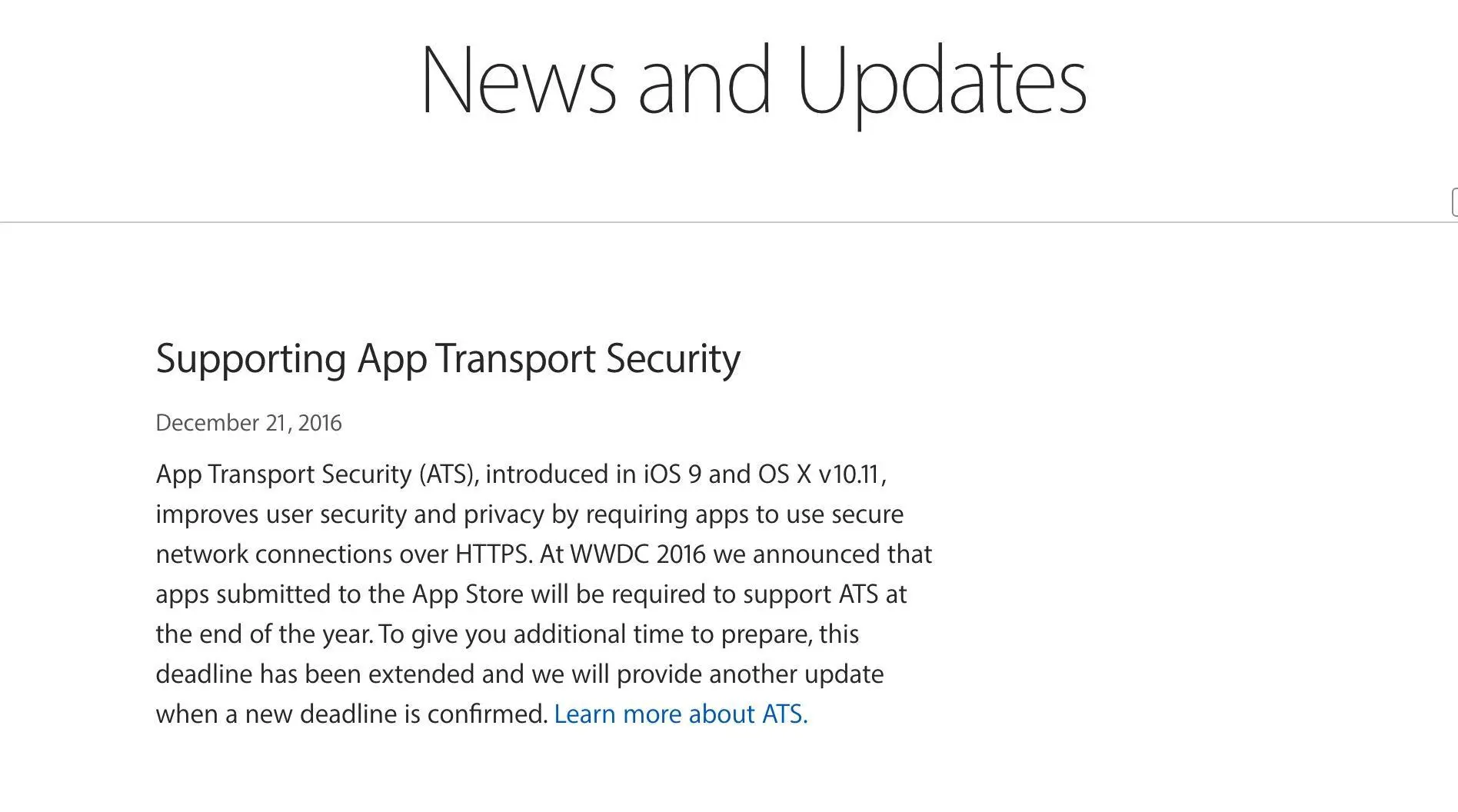 苹果官网最新消息:原定于2017.1.1强制的https被延期了,具体延期到什么时候不确定,得等官方通知: