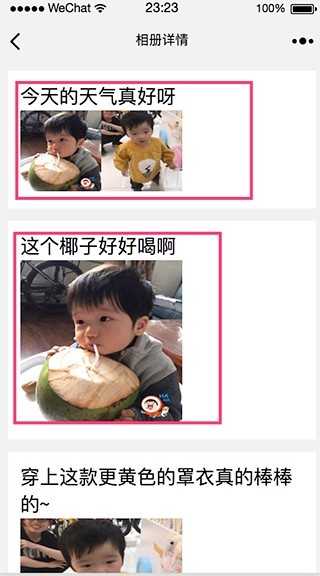 达到目的,现在开始渲染视图,有个特别情况需要说下,当photo记录的photos照片返回一个的时候,就不要2*2了,直接显示即可。