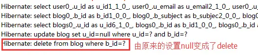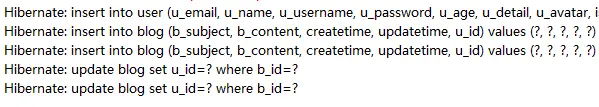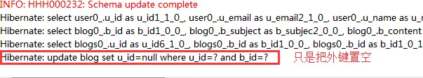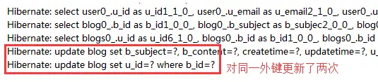 上面两个操作都改变了对象关系,如之前说的,session的缓存和快照不一致了,对于User对象,需要更新外键,对于Blog对象,也需要更新外键。