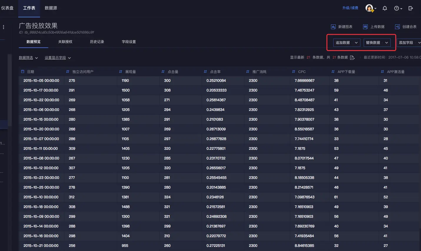 ——第二次、第三次......拿到常规数据后,就直接上传将上周的数据替换掉,仪表盘里面的每个图表结果都会自动更新。(PS:前提是每次上传的数据格式什么都是一样的,反正我需要的数据都是一样的。)