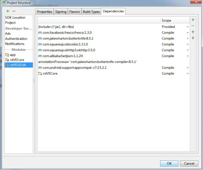 添加成功后点击Project Structure设置界面的“OK”完成导入工作。