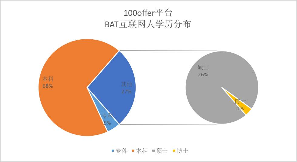 BAT 对外社招的招聘 JD 里通常都会对学历进行严格限制,普通岗位要求本科以上学历,部分岗位甚至要求硕士以上学历,且毕业于 985、211 高等院校,这使得许多低学历的互联网人对 BAT 望而却步。