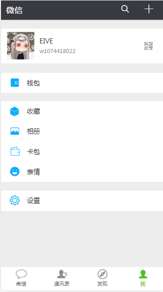 为了更清楚感受BEM的命名方式,我仿制了一下微信的个人页面,其中图标来自Iconfont矢量图标库,图标命名直接使用其原始的命名