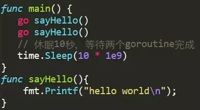 “goroutine和线程很像,就是一段可以运行的代码,你在一个函数调用之前加上关键字go 就启动了一个goroutine,简单不?“