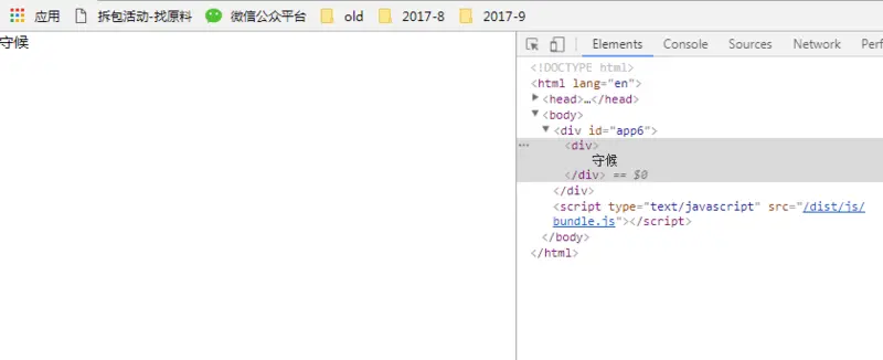 </html> 5.命令行输入$ npm run dev跑起来,结果完美!这几步的原理貌似没什么可多说的,都是固定式的步骤。