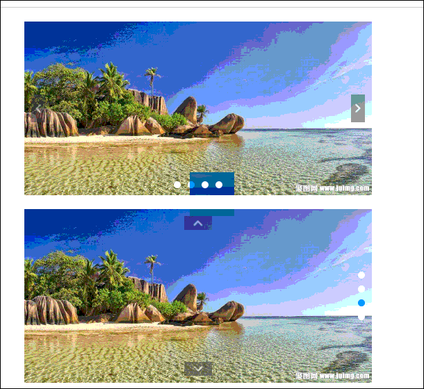 这个时候又要把第一个点变成蓝色,但是对应点的索引和nowIndex对不上,这个时候用一个技巧。把第一个(.span1)点显示出来,然后把最后一个点隐藏。这样还是用户看到还是看到4个点在屏幕!等动画执行完了,拉回去第一张的时候。把.span1隐藏,正常显示对应的点!这个大家细想一下就知道了。到了第一张,再点击左边箭头类似效果回到最后一张也是相同的处理方式!