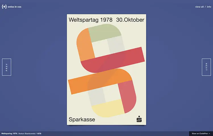 SwissinCSS 展示了如何使用纯CSS来构建经典的瑞士海报设计。源代码在 CodePen中可用。