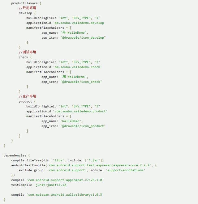 (1)develop:开发环境,开发和自测时使用(2)check:测试环境,克隆一份生产环境的配置,在这里测试通过后,再发布到生产环境。之所以没命名为test是因为在gradle编译时:ProductFlavor names cannot start with 'test'(3)product:生产环境,正式提供服务的。